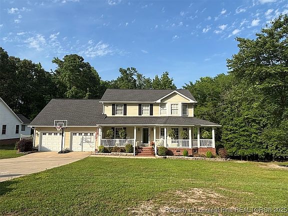 Welcome to this beautifully maintained 4-bedroom, 2.5-bath home on a private 1-acre lot in Lake Williams, just minutes from I-295 and Fort Bragg. Featuring wide-plank hickory hardwood floors throughout, this home also boasts Carrara marble countertops in the kitchen and all bathrooms, offering timeless elegance and durability. The spacious primary suite includes a walk-in closet, jetted tub, and tiled shower. A finished bonus room serves as the fourth bedroom. The living area is anchored by a cozy gas log fireplace and flows into an open kitchen and dining space ideal for entertaining. Enjoy outdoor living with a wrap-around front porch, two-tier back deck, 20x20 stone fire pit, and a backyard that borders undeveloped land. Additional highlights include a 12x24 wired and plumbed workshop with separate driveway, 220V-wired double garage with cypher lock, a gas grill hookup, children's play area, two-zone heat pump, hardy plank siding, and an 80-gallon water heater. This home offers the perfect blend of comfort, function, and privacy in a convenient location.