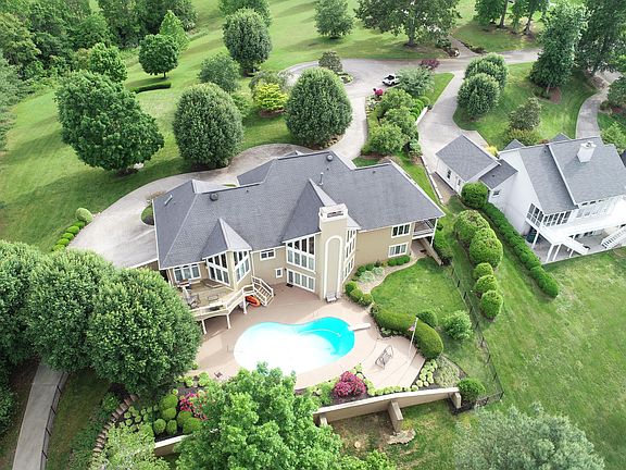 Exquisite custom built home on deep cove w/year round water on Cherokee Lake. 3 lots are included at the end of cul-de-sac for a total of 2.385 acres. Incredible mountain and lake views from most of the rooms, hardwood & tile throughout the home, custom cabinetry and lighting, granite counters, screened porch off master bedroom to enjoy amazing sunsets! Gunnite in-ground pool with diving board, 2nd kitchen area and full bathroom in basement along with spacious den including fireplace, wet bar, and tile floor. Lots of storage room and 2 garages in the basement for boat, jet ski, pool equipment, etc. storage. Recent improvements include all new windows ($100,000), new kitchen, new master bathroom, new deck, new boat dock, new fencing, etc. ($150,000).
