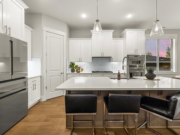 Incredibly rare in Happy Valley, the impeccable one-story is 100% spot on with the latest in upscale style and design. Just how difficult is it to find a Unicorn like this one? Only 15 single level homes, built in the last decade, have been resold under 1 million in all of Happy Valley. It doesn't even stop there though. This home is the definition of excellence in every way. The impressively turn-key stunner has over 100k in upgraded finishes which are noticeable throughout. Fall in love with the highly desirable floorplan, custom blinds, engineered hardwood floors, quartz countertops throughout, wood wrapped windows, 10 ft ceilings, and tile floored bathrooms and laundry room. The gourmet kitchen offers luxurious Thermador appliances, Bosch refrigerator, upgraded lighting, wine drawer, large island, and under cabinet lighting. Hard to find in one-level newer construction, the stunning primary suite completely delivers with a huge walk-in closet, beautifully tiled tub, and spacious walk-in shower with glass surround. The easy to maintain composite deck and fully landscaped backyard affords you the ability to make the most of your time enjoying gorgeous PNW views. The prime location is in North Clackamas School District and is just minutes from grocery stores, dining, coffee shops, and more. It's clear that you have waited long enough...and this one is a can't miss!