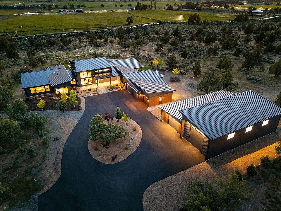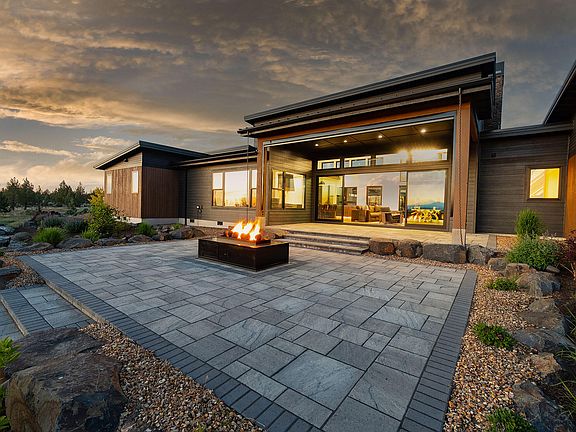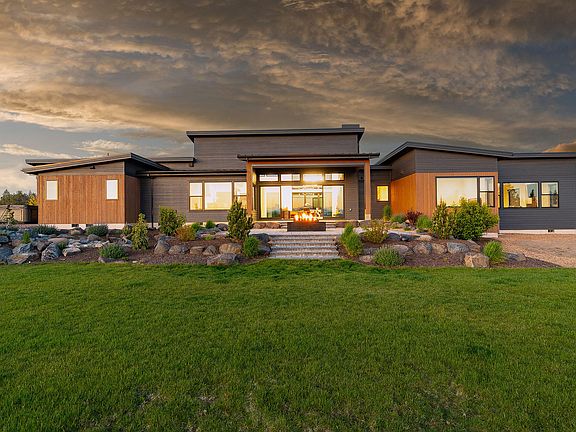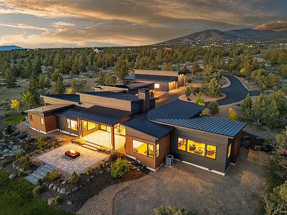 Stunning Grandview Estate in Powell Butte, Nestled on 9.67 Acres with Breathtaking Mountain Views. Meander through the Custom Gated Driveway to the Sprawling Single Level Mountain Modern with Contemporary Style and Picturesque Windows. Spacious Great Room with 16ft ceilings, Custom Iron Wood Burning Fireplace, Amazing Slider to the Covered Back Patio with Custom Fire Pit and the Sparkling Water Feature, Privacy and Views. Kitchen boasts large Quartz/Stone Island with Underlighting, Jen Air Appliances, Butler Pantry with Floating Shelves. Luxury Primary Suite features Stone Wall with lighting, Private Covered Patio with Hot tub, Elegant Primary Bath with Porcelain Heated Floors and Shower, Custom Walk-In Closet. Bonus Room with Wet Bar, along with Two Guest Suites. Attached Three Car garage with Safe Room, Detached RV Garage with potential for an ADU - 732 SF Flex space with bathroom and laundry. Come Tour this Home Today!