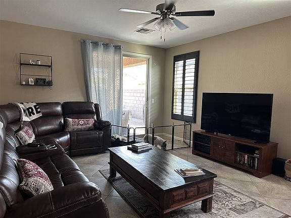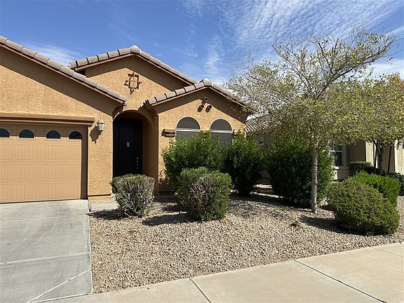 Stunning 3BR/2BA Single-Level Home with Owned Solar This beautifully maintained home offers an open great room, a formal dining area, and a chef’s kitchen with stainless steel appliances, granite countertops, breakfast bar, upgraded maple cabinets, recessed lighting, and a pantry. The spacious primary suite includes dual sinks, a private toilet room, and a walk-in closet. Plantation shutters, ceiling fans, and stylish finishes are featured throughout the home. Enjoy outdoor living with north-south exposure, a covered patio with pavers, synthetic grass, and low-maintenance desert landscaping—ideal for relaxing or entertaining. Owned solar helps keep energy costs low. Conveniently located near I-10 and Loop 303 for easy commuting. (Kitchen bar stools can stay)