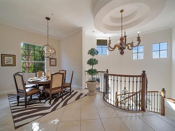 C.15942.Significant price adjustment offers great value in the award winning resort style community of Mediterra.This elegant second floor coach home offers stunning water views and a unique end location with its own private drive. A grand two story entrance leads to a large and spacious open floor plan that showcases expansive lake views. Architectural details include a curved iron balustrade, volume ceilings and crown moldings. The great room boasts sliders and transitions to the lanai for indoor/outdoor living.The light filled kitchen and breakfast room offer granite countertops, upgraded stainless steel appliances, and a gas cook top. Enjoy the bar with wine cooler. An elegant master suite and sitting area open to the lanai offers his and her vanities, with classically appointed marble countertops, a large soaking tub, walk in shower, and spacious walk in closet. A split floor plan with two guest suites and upgraded baths allows privacy for you and your guests. A den/private office off the great room awaits its new owner. 2 Tom Fazio golf courses, private beach club , fitness center, active tennis programs, pickle ball, bocce, casual open air & fine dining.