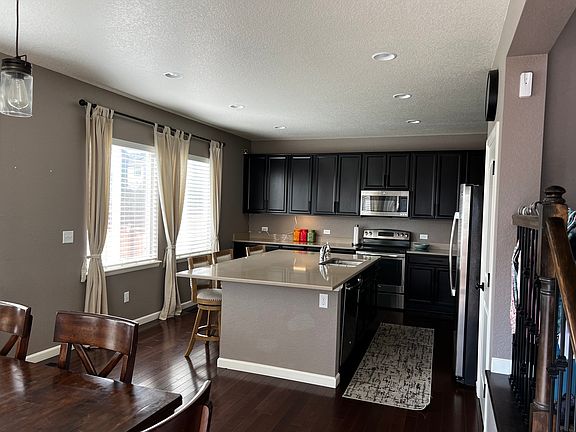 Located just minutes from I-25, this gorgeous open floor plan will make you feel right at home as soon as you open the door! Gleaming wood floors throughout the main level and a spacious kitchen with an oversized island. Enjoy entertaining friend and family in the backyard with plenty of space to stretch out or cozy up to the gas firepit. This home will go fast, don't miss a chance to make this amazing home yours. The home includes all kitchen appliances, washer and dryer, ring doorbell, curtains on the main floor windows. The home includes a 3 car tandem garage and a large outdoor natural gas fire pit. This home is located in Broomfield but is part of Erie Schools. (Soaring Heights/K-8 and Erie High School) Security deposit and first months rent due at lease signing. Minimum of 1 year lease required. Currently offering an incentive of $1,000 off first month rent if rental contract signed by November 30th. Renter is responsible for all utilities. Renter is responsible for HOA fee of $75 that include sewage and trash service. Smoking of any kind is prohibited in the house. There is an additional pet deposit of $500. Maximum pets allowed is 2. Deposit and first months rent due at lease signing.