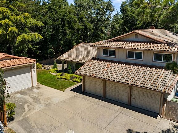 Enjoy privacy & tranquility in this remarkable hilltop home in the coveted Parsons Estates community. Tucked away on a deep cul-de-sac, tree-lined perimeter, nearly 1/4 acre LOT, w/ 6 GARAGE SPACES! Impressive 2nd floor deck w/ canopy views of Ten Hills Trail, backing up to Redwood Canyon Golf course. Meticulously maintained home offers an ideal floor plan, incl a downstairs guest BR & full bath, space for a home office, designated utility room w/ wash sink, & oversized detchd garage perfect for large vehicles, even a boat! Cathedral ceilings, expansive windows, glass sliders, laminate wood floors, floor-to-ceiling mirrors, provide abundance of natural light. Wall to wall stone fireplace & open beam ceiling overlook the patio & beautifully manicured landscape. Primary suite w/ accesses custom designed, oversized wood deck. Nature, views, privacy, options for entertainment, incredible usage of space. First time on the market, rare opportunity to own!