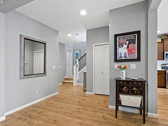 Laminate floors from the foyer though the kitchen, nook, great room, dining room and powder room. Gourmet kitchen with large island, S/S Appliances, gas cooking and quartz slab counter tops. Spacious great room with gas fireplace. Elegant Primary suite with large walk-in wardrobe, tile floors in the bathroom, Garden (soaking) tub. Covered front porch to enjoy the beautiful sunsets, A/C, & more in this Beautiful community near Portland Community College, parks, walking trails and Bethany Village!