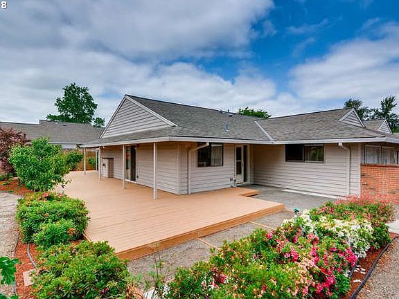 Gardeners Paradise! Spacious 1 Level Living. End Unit on Huge Corner Lot. 2 BD,2 BA with RARE Bonus Rm for 3rd BD, Office or Craft Rm. Great Rm has high ceilings,fan,Lg Bookshlves & gas frplc w/ 2 sets of Sliding Glss Doors opening to enormous wraparound Deck and Covered patio.The lush garden has Flowers, Fruit Trees & Veggies. Kitchen has wht Cabs & newer SS Fridge. Master Suite includes walk-in closet. 1 car garage has wkbnch/storage.