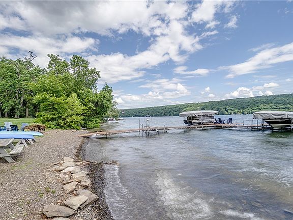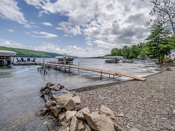 A very special property for those who love the lake and their privacy! Absolutely beautiful 3 bedroom, 3 & a half bathroom, year round Keuka Lake home on 1.2 acres! A fabulous, outdoor kitchen and entertaining area with a woodburning fireplace, an EGG smoker, a large grill, and a dining area. Casually elegant and tastefully appointed, this newer home shows beautifully! Windows and sliding doors surround the first-floor living, dining, and den area bringing light and nature to your fingertips. Expansive covered porch across the front of the house… perfect! Wonderful ground-level patio space, which is also covered, lets you bring the lower level finished ‘playroom’ outdoors. Gorgeous, thoughtful, Perennial Gardens throughout the property. Mini-splits are in addition to the original hot water baseboard heat source and keep the AC cool in the Summer. Public water! Most furniture conveys with the home. See exclusion list attached. Public records differ from the actual square footage. Delayed showings begin 7/12 at 10am. Delayed Negotiations on 7/19 at 3pm. Please allow 48 hours for seller to review offers. A true gem in the heart of the Finger Lakes awaits...