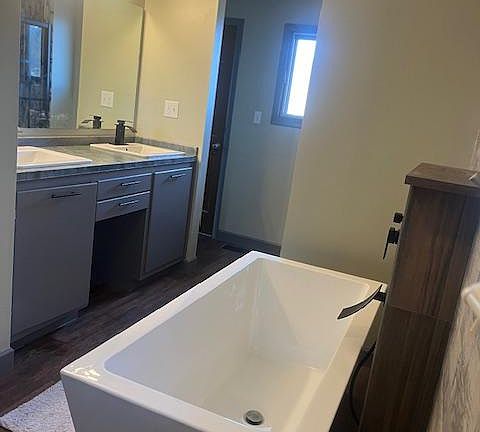 500 sq ft newly remodel master on suite with stand alone tub, large shower with jets, private entrance off new tenants private 24x14 patio. Currently furnished with king bed, table and chairs. Can keep furnisned or bring your own. Share a large open floor plan kitchen/livingroom with 18' stone fireplace. 2 other house mates, one older female that lives elsewhere part time and one young professional. Plenty 828 0f 333 parking 0240, give me a call.