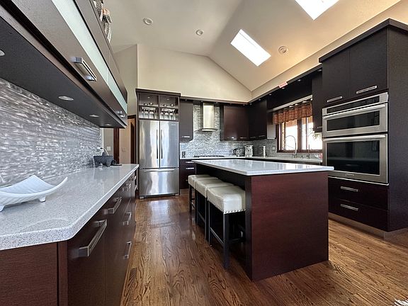 One of a kind, unique custom built 4 bed 4.5 bath contemporary hillside ranch in desirable Burr Ridge area. The home has been totally renovated and features: open floor plan, hardwood flooring throughout the common areas, vaulted ceilings, skylights, raised panel oak doors, central vacuum cleaner, brand new roof ( in 2021) , custom European kitchen with an island, exclusive silo stone countertops, top of the line backsplash, stainless steel appliances. Fully updated bathrooms with new tiles, showers, tub,sinks,toilets,faucets,light fixtures -all top of the line materials and labor. Living room with custom fireplace, wooden deck overlooking beautiful, very private, resort like, fully fenced in backyard with professionally done landscaping. Walkout lower level - ideal for entertaining features: a family room with wood burning fireplace and access to covered patio, huge rec room with wet bar offering granite c-tops, wine cooler, mini fridge,ice-maker and more. Great guest suite has a private bath, walk-in closet. Large covered patio is connected by sidewalks with a heated swimming pool that operates on a salt water system. Safe, quiet neighborhood ,close to shopping malls with convenient access to major expressways ( I-55 , I -355 ) ,still in near vicinity to forest preserves with walking and biking trails, waterfalls , picnic areas-fantastic for nature enjoyment. Loan pre-approval or proof of funds required.