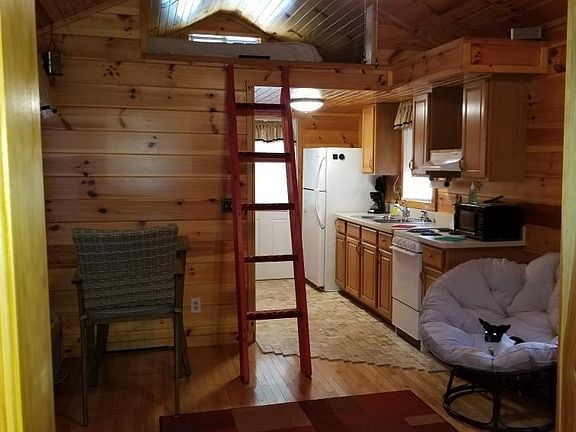 Tiny log cabin on wheels! Are you looking for the perfect in law suite, guest house, vacation rental or your very own smoky mountain get-away? Well...look no further you just found it! This cabin features log siding, metal roof, tongue & groove wood interior, high vaulted ceilings, hardwood floors, solid surface countertops, new s/s double kitchen sink, new washer/dryer, natural stone mosaic tile, new plumbing,amana air conditioning & heating wall unit & ceiling fans. 8x12 loft has cushioned carpet.The attached covered porch could be enclosed for additional living space, 8x12.The cabin is in immaculate condition from top to bottom! Cabin can easily be moved to your destination. It's ready to go! Cabin comes partially furnished and all appliances convey with the home! More information is available regarding moving the cabin. Option of keeping the cabin where it currently sits: It costs $325 per month at Bear Hunter's Campground, which includes your water, sewer, garbage pickup & has metered electric. Vacation rentals are permitted at this location! Lots of options with this one! Owner has another tiny log cabin on wheels similar to this one for sale too, just a different color!