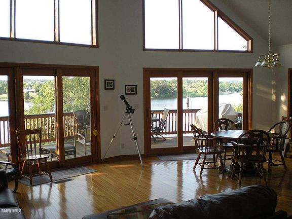 SPECTACULAR LAKE VIEWS! This waterfront home features an open great room design with a prow front. The great room area including kitchen, dining area and living room has a cathedral ceiling and an open stairway to the loft. The main level is rounded out with 2 bedrooms and a full bath. The kitchen was remodeled within the last 3 years including new cabinetry, counter tops, and flooring. The main & upper level baths were also remodeled with new vanities, fixtures and flooring. The loft is large and could serve a variety of uses such as additional sleeping or entertainment area. The second full bath is located on the upper level. The lower level offers a bedroom with no closet, the homes third bathroom and a large family room with very high ceiling and a wood burning stove. The views are wonderful on all three levels through the wall of windows facing the lake. The u-shaped blacktopped driveway makes for easy ingress and egress. There is a limestone path that leads to the shoreline. A sand area nestled in the hillside at the shoreline is the perfect spot for your bonfire. Come and see all that this lovely home has to offer!