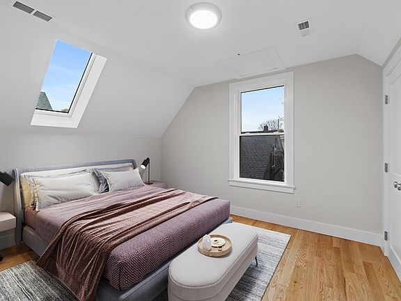 Welcome Home! Move right in and enjoy this gut renovated bi-level unit on a leafy street just off Mass Ave, down the block from the Community Path. This upper duplex offers an airy, open-concept layout with high ceilings, abundant natural light, and hardwood floors. Great chef’s kitchen with Frigidaire professional line SS appliances, elegant shaker style cabinets and granite counters invites conversation with guests. The first level rounds out with a bedroom, full bath, and an office/den as a bonus flex room. Upstairs, the primary bedroom offers an ensuite bath with a designer double vanity and sleek glass shower door, complemented by a second bedroom, both with ample closet space. Enjoy the convenience of in-unit laundry hookups, extra basement storage, and a common rear patio. With quick and easy access to Tufts, MBTA Green/Red Lines, outdoor recreation, dining, shopping, and nightlife in Porter and Davis Squares, this home is a true urban oasis.