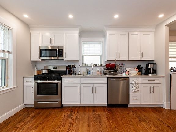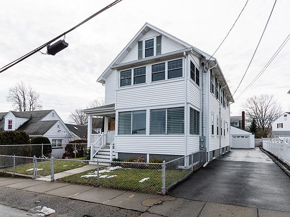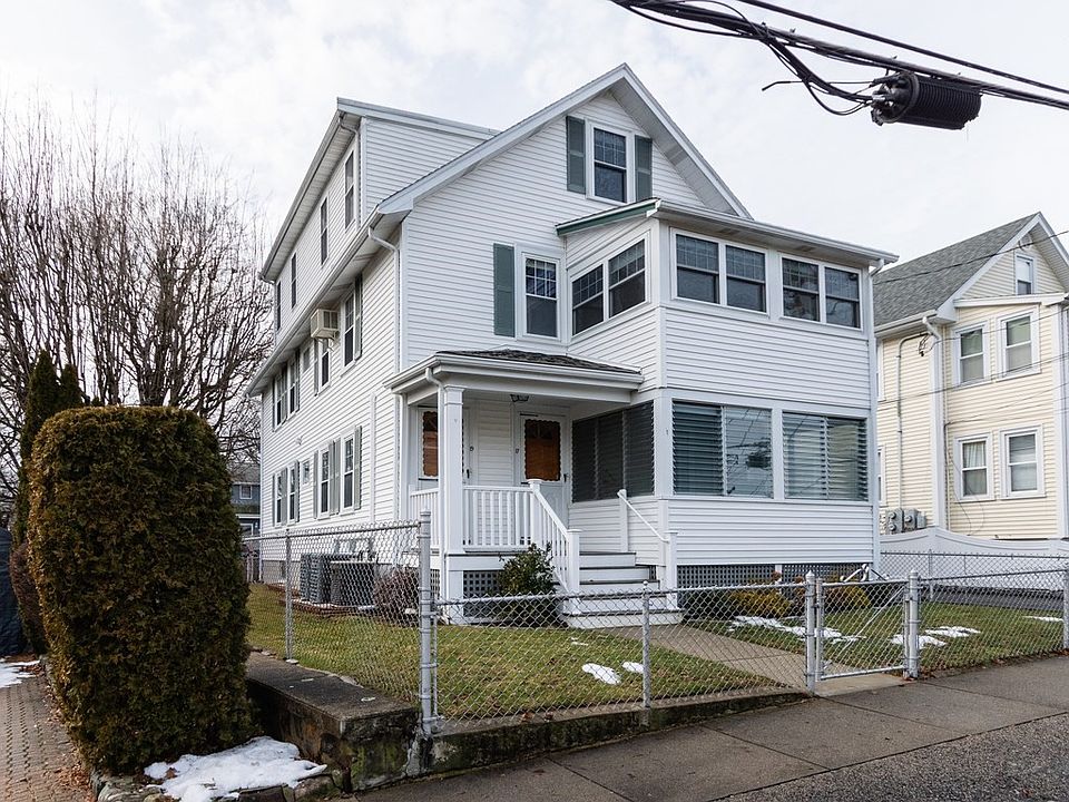 Tremendous two family on a quiet side street. This beautiful property has been lovingly maintained by the same family for over 60 years and fully owner occupied for most of their ownership. The first-floor unit was newly renovated in 2023 with a new kitchen, new bathroom and open floor plan. Gas heating and central cooling throughout. Hardwood floors throughout the unit and a bright front sunroom with jalousie windows. Top floor unit consists of 4 Bedrooms and 2 Baths. Updated kitchen with natural wood cabinets, granite countertops and updated appliances. Refreshed second floor bathroom with new vanity, toilet and fixtures. 3rd floor with full shed dormer consisting of two bedrooms and 2nd full bath. Detached oversized 26 x24 wood frame garage with insulated automatic doors and storage space. Plenty of parking for multiple cars, fenced side yard and concrete patio. Easy access to commuter rails, 73 bus line, town field, Cushing Square, Waverley Square and Belmont Center.