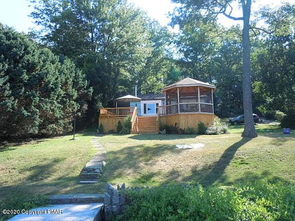 Two adjacent Nuangola lake front properties-108 feet of shoreline - one lot with dock, unique Lustron Steel 2 bedroom house, with beautiful large deck and screened gazebo. Stone patio with outdoor built in fireplace and two room guest cottage/boat storage in rear. Just 2 hours north of Philadelphia or west of New York City. Enjoy the beautiful views and avoid the crowds on this spring-fed 100 acre lake. Sailing, kayaking, canoeing, fishing, water skiing, and power boating. Approximately 30 percent of the shoreline is considered wetlands and will forever be preserved. Enjoy as is or build home of dreams or two adjacent cottages. Electric baseboard Wood burning stove Well water Township sewer system