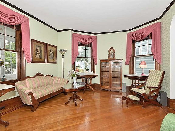 Single family colonial gem set on a triple lot with detached garage, close to Boulevard East with NYC views. Live in old world splendor in absolute mint condition with privacy and charming details: Solid wood doors with floral and bullseye motif trim, floor and crown molding, oak hardwood floors laid on the diagonal with chestnut inlay. Sun flows into this four/five bedroom, two and 2 half bath home through leaded glass windows and stained glass. Enter the home into a relaxing sun porch and exit out the back via a food pantry/mud room with built-in closet storage to an expansive back and side yard. This home has plentiful closets, one walk-in, and a dressing room/nursery in the master bedroom. The beautiful slate roof was upgraded with copper gutters, leaders, ridge caps, snow stops, valleys and flashing. Updates include two-zone central air, newer gas furnace (2011), electrical panel (2000), storm windows, garage windows, and door, and faux slate composite on lower roof and garage. The extra long driveway affords additional parking for 2+ cars! A very well cared for home awaits the discerning buyer!