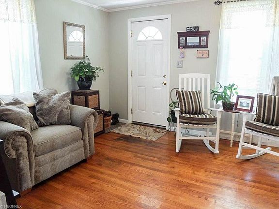 Fantastic 2 bedroom, 1 full bath home on a double lot with a huge side yard and serene backyard! Nice foyer/front room with beautiful wood flooring and crown molding - could make a great sitting room, front office or mud room. Spacious living room has wood flooring, wainscoting and crown molding. Open, eat-in kitchen has crown molding and ample cabinet space. Huge full bath on the main level with crown molding PLUS first floor laundry! On the second level, there are two nice sized bedrooms, both with crown molding and great closet space. 1 car oversized garage, too. Private, fenced yard has been nicely landscaped and offers a firepit and deck great for entertaining. Wonderful location in a quiet neighborhood near schools and shopping! Come see all this home has to offer!