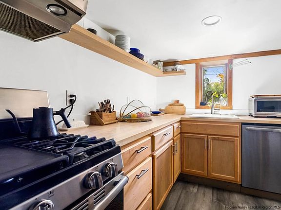 Adorable and cozy Catskills getaway in Accord on a quiet dead end road. This is a 3 bedroom, 1.5 bath farm house with an additional sweet, newly updated studio cottage on a 2.5 acre lot. It is a must see for anyone that wants to live in a private setting while having the ability to earn a rental income at the same time. The main house was updated last year with new insulation, plumbing, electrical work, paint and a custom kitchen. It has original stone interior walls that make this timeless home one you won't want to leave. With a beautiful private backyard, complete with an outdoor shower and garden, you can always find a peaceful moment in this space. There's a wooded lot tucked away above the house that allows for ample playing and nature exploration that boarders many acres of undeveloped private land. This would be a great location to build another structure - a larger house, studio or guest house. Both the studio cottage and the main house have been successfully rented out short term since the beginning of the spring. This is one of the few properties that is in the Onteora School District while also being in the Town of Marbletown. It is close to the Ashokan Reservoir, Woodstock, Stone Ridge, High Falls, Mohonk, skiing and abundant hiking and biking trails. Work from home (high speed internet access via Spectrum) or relax and take in the tranquility of this one of a kind home.
