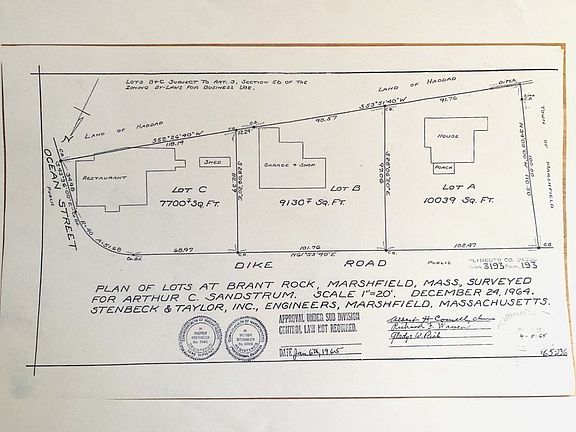 Opportunity awaits! Bring your vision and your contractor! Across from the beach, these contiguous properties offer a prime location as you approach the Esplanade. With B4 zoning, growth and development options include potential for residential and retail. Condos or apartments? Buyers and buyers agents to perform due diligence. Ask agent for an artist's rendering of one concept of one idea, not an approved project. Be at the forefront of the revitalization of this seaside village, with its charming shops, restaurants, music venues. Brant Rock has had an interesting history and now YOU can be a part of its future. Several opportunities are available for builders/investors/developers as this distinctive area of Marshfield enters its next phase. See 266 Ocean Street listing and 33 dyke Road for additional investor/developer opportunities.