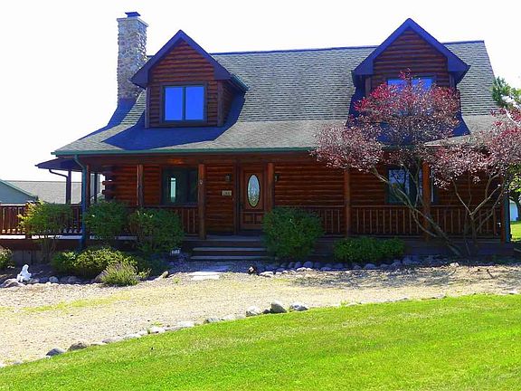 PRICE REDUCED!! Welcome to this Lake View home! The main floor has an open concept that combines the living room, dining room and kitchen. The living room has a stone wood-burning fireplace. Large dining room just off the kitchen area as well as half bath and mud/laundry room. Kitchen features stainless steel appliances and has a great breakfast bar for extra counter space and seating. This area opens to the covered porch and deck area with a beautiful Lake View and Country View. The Master bedroom is on this level with private full bath. The upper level has a full bath, three guest bedrooms and a balcony that overlooks the main floor. The finished lower level has a great open family room, a full bath and guest bedroom. There is a 3 stall extra deep detached garage, a pond and fire pit as well. HOME AND GARAGE WERE BOTH HAD FRESH STAIN JULY 2018. Views: Lake View, Panorama, Country View. All property sales subject to LCA transfer fee.