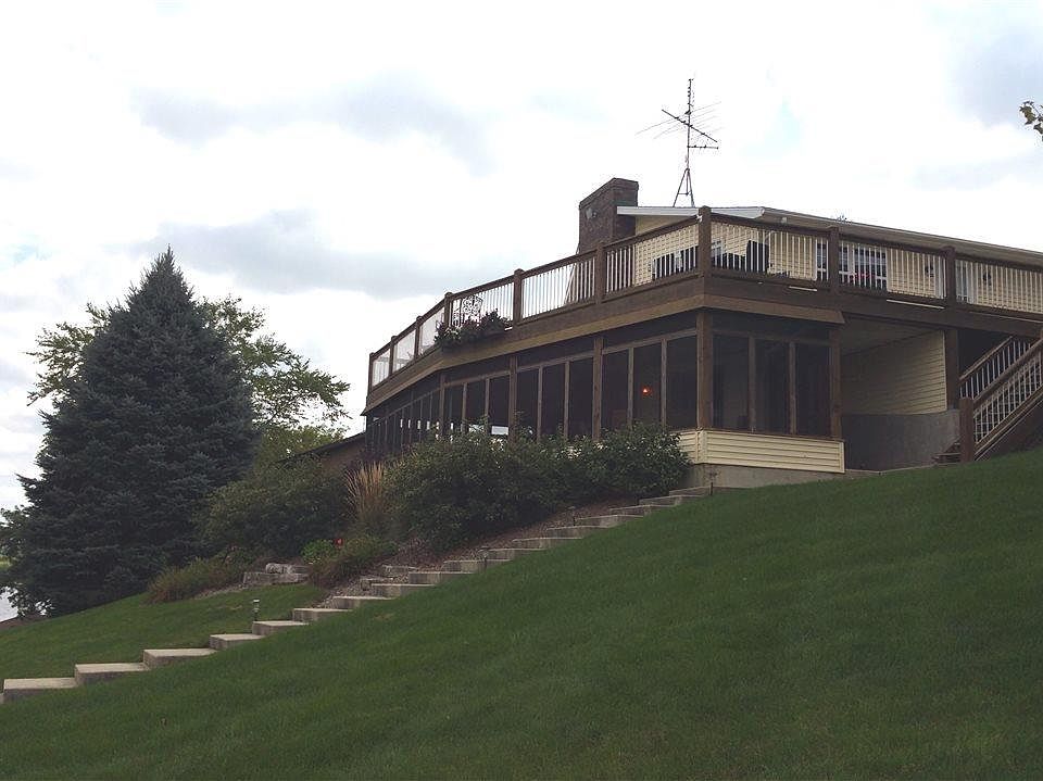 SPECTACULAR VIEWS ON A GENTLE LOT. Just a short walk to the lake and you can to begin your day on the water. Check out this fantastic waterfront home with gorgeous lake views! Located on just over a half-acre, this property has a great open concept living space! A combined kitchen, dining and living space gives you great lake views and access to your deck! Down the hall is a remodeled full bath with new tile, fixtures and vanity (2016) as well as the master bedroom and a guest bedroom. The two ductless Panasonic units cool the main level on the hottest of days. The lower level has a spacious walk-out family room as well as two non-conforming guest bedrooms and a full bath (also has new tile, fixture and vanity). There is a laundry/utility room on the LL as well with new washer & dryer. Connected to the family room is a great screened in porch-perfect for entertaining. Follow the steps to the water and check out the waterfront paver brick patio with fire pit and gazebo, installed in the spring of 2016 - including landscaping and lights from the house to the water. The property has a new garbage disposal, 2 ductless Panasonic units on the main level, an over-sized, detached 2 stall garage; the inside of the home was painted in 2016, there is a concrete circular drive for extra parking and much, much more! New gas grill and other gas grill to stay with home. All sales subject to LCA transfer fee.