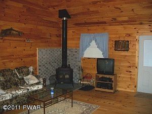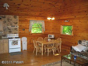 CUTE NEWER BUILT LOG HOME- Complete with Deeded Full Lake rights and a Dock Slip to Georgous 100 Acre Spruce Lake. A Wonderful and Cristal Clear Motorboat Lake Great for all your Water Sports and some of the Best Fishing in Northern Wayne County. Features a lovely open floor plan with gorgeous wood work, 2 lg bedrooms, the loft can sleep 3-4 comfortabaly all On almost 1/2 Acre lot. Only 15 minutes from Elk Mountain for the best winter skiing around or autumn hiking.Hurry Make Appt. Today!