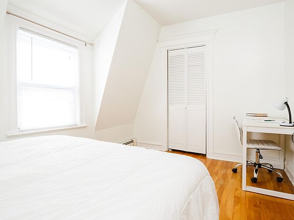 Modern 2 bedroom located on the third floor of a private home near Blvd East. Top floor so it is quiet, there are no tenants above this apt. It has a living room which is a good size. The living room gets great natural light and has beautiful hardwood floors. There's a modern eat in kitchen with gas stove, full refrigerator and a stackable washer/dryer unit. The master bedroom is located in the back of the apt, it has a large closet. The second bedroom is located closer to the front of the apt so there is privacy. The modern bathroom is tiled and has a tub/shower and it is located in the middle of the apartment. Tenant pays all utilities including heat, hot water, cooking gas, and electricity. cold water and sewer charges are included in rent. No smoking, one cat permitted please. Available for May or June. Good credit, a score of 700 or so is necessary. There is a credit report fee of $20 per applicant. Verifiable income of $90,000 range is required.This apartment is being offered by Re/Max Villa and there is a $1500 fee due at lease signing. Tenant pays Gas, Electric, Heat & Hot Water, Washer & Dryer in unit. 1.5 month security deposit required.