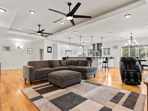 Inside, you'll find spacious living areas complemented by custom tray ceilings that enhance the home’s charm and character. Wall-mounted AC units throughout ensure comfort year-round, while county water keeps everything running smoothly.