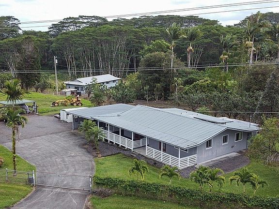 Quintessential Ranch in Mt. View. Situated on over an acre of land, this darling country home has the convenience of all utilities. Enjoy the large semi wrap around lanai with 3 sets of double doors for ease of access to kitchen, dining area and living room. You'll be pleasantly surprised with the spacious kitchen/dining area, great for entertaining. Also note the open beamed pine ceilings enhancing the country cottage feel. Step down into the over sized living room where you can enjoy the company of friends and family. The property is completely fenced with remote controlled gate. Approximately half of the lot is separately fenced pasture, perfect for your horses or other livestock. Being zoned RS-20, you have the option to build another dwelling or subdivide. A property like this is a rare find.