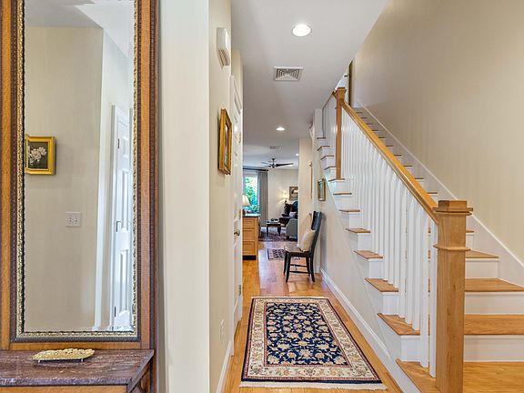 Amazing opportunity to live in-town Brunswick in a quiet condo association. Beautiful three level living space with 4 bedrooms and 3.5 baths totaling 2500sf. Open concept first floor with the kitchen overlooking the dining and living area and cozy first floor deck. The kitchen has maple cabinets with soft close drawers and granite counters. Central air conditioning. Wood floors throughout with tile in bathrooms. Bathroom off the primary bedroom was updated by the current owners with double sinks and plenty of storage. This bathroom connects to a custom walk-in closet with well designed hanging and shelving storage. Stack washer dryer is conveniently located on the second floor. This unit has lots of storage space on all levels. Multiple outdoor porch and private deck areas. Secure two car garage provides direct access to the lower level of the unit. Enjoy walking to many fine restaurants, shopping, and Brunswick's farmer's market. The Amtrak stop in Brunswick is a short distance away. Pet friendly.