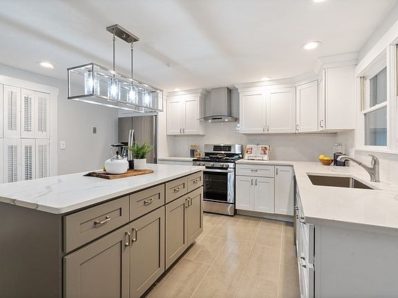 - Kit Dscrp: Countertops - Stone/Granite/Solid, Flooring - Stone/Ceramic Tile, Kitchen Island, Stainless Steel Appliances, Recessed Lighting, Remodeled, Gas Stove, Lighting - Overhead