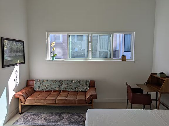 Beautiful, serene room with large windows in the heart of Russian Hill. This room has a private elevator access and a large, private bathroom with lots of closet space, bathtub, Toto bidet toilet, Nest Home thermostat, heated floors and natural berber wool carpet. The room has a desk, stylish leather couch and a king bed. This room does not have a kitchen but a small refrigerator / freezer can be provided. Perfect for working professionals since it is fully furnished. Included with rent is all utilities including high speed internet access. You will have access to the washing machine and dryer in the garage.