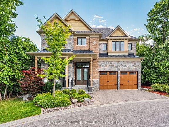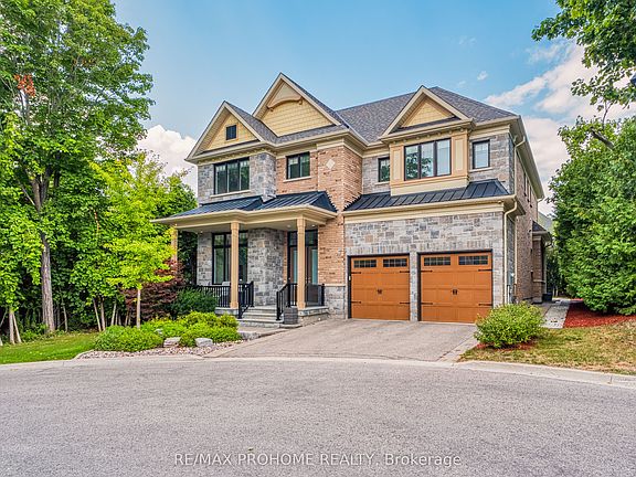Welcome to this spectacular custom-built residence tucked away on a quiet, exclusive cul-de-sac in historic Markham Village. Offering over 4,345 sq ft above ground plus a professionally finished lower level, this home combines timeless curb appeal with a minimalist, contemporary design and premium finishes throughout. Step through the elegant double doors into a soaring foyer and experience the 10-ft ceilings on the main floor, rich hardwood floors, and an impressive open-riser staircase with custom iron railings that enhances the homes airy feel. The main level showcases a formal dining room with designer chandelier, a private office, and a spacious living area with multiple walk-outs to the backyard. At the heart of the home is a custom-made chefs kitchen featuring Thermador appliances, an oversized center island, and a custom glass dining table perfect for everyday living and entertaining. A butlers servery with wet bar connects the kitchen and dining areas seamlessly. Upstairs, discover four generously sized bedrooms, each with its own ensuite bathroom, including a luxurious primary suite with steam shower, towel warmer, and two large walk-in closets. A convenient second-floor laundry room enhances everyday ease. The third-level loft offers a bright, versatile space ideal as a home gym, studio, or lounge. Outside, enjoy an expansive, professionally landscaped backyard with a multi-zone stone patio, in-ground sprinkler system, and lush greenery ideal for outdoor dining and lounging. The finished basement adds exceptional versatility with an open-concept layout, pot lights, and a rough-in for a wet bar, creating a perfect recreation or entertainment space. Steps to Park, top schools, GO Transit, community centers, shops & restaurants, Stouffville Hospital, and Hwy 407. This stunning property blends sophisticated style with exceptional functionality in one of Markham's most desirable settings-- a true rare offering!