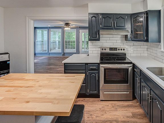 - Kitchen Island, Custom Cabinetry, Solid Surface Countertop(s), Separate Dining