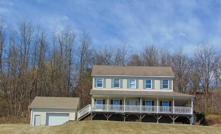 Spacious colonial with open floor plan, hardwood flooring, 4 bedroom, 2.1 baths, located on 2.31 acres on a private road. Covered porch and 1 car detached garage.