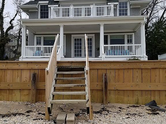You will feel like you're on vacation year round in this beautifully updated Nantucket style waterfront home with western views of Huntington BAY. Home has 50 feet of direct waterfront. There are 2 second floor bedrooms with walk-in closets and on suite bathrooms, plus a main floor study or guest room and full bath. Rear patio and porches were built with maintenance free Tyvec planks. High impact hurricane windows meet current building codes.There is an attached heated workshop and large attic space with potential for expansion. Enjoy nightly sunsets from your porch or master bedroom balcony and sweeping bay views from your open concept kitchen and great room. Home must be seen to appreciate. Town: Hamlet of Eatons Neck