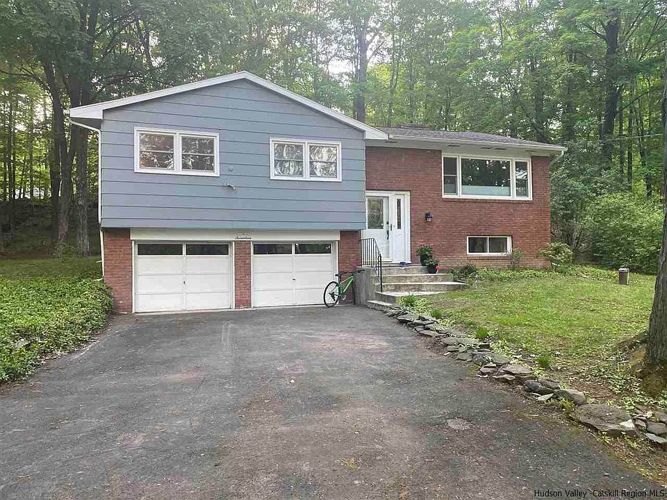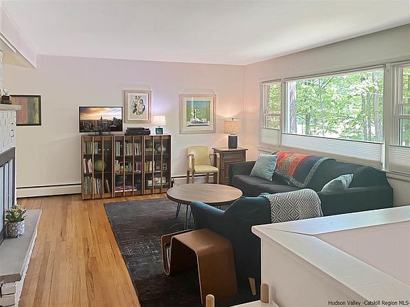 Located minutes from Woodstock village on a very quiet and serene neighborhood road, this ranch home offers the best of both worlds... convenience and a peaceful environment. The 3 bedroom home has two full baths (both renovated and one only 2 years ago). Every room has multiple windows making the house bright and airy and showcasing all the nature and trees surrounding the home. The living room flows perfectly into a dining area and then an eat-in country kitchen. The kitchen has a stainless steel dishwasher and fridge and a 2 year old stove range and microwave. The backyard is a rare find for the area.... it is on over 1 acre surrounded by stone walls on two sides. The rear of the yard faces beautiful rock ledges and a wall of green mature trees. You can sit out on your deck during the summertime and not see any neighbors behind you. The basement features a large den / playroom with an additional storage and laundry space as well as a two car garage. Close by Woodstock, Kingston, hiking trails, the Zena Pool and Tennis club, swimming holes and approximately 20 minutes to skiing. A Woodstock address with low Hurley taxes. This home is ready to move in immediately and enjoy the Woodstock lifestyle. All real estate professionals and members of the public are required to wear a mask when visiting this property.