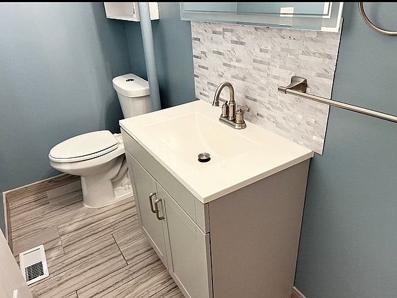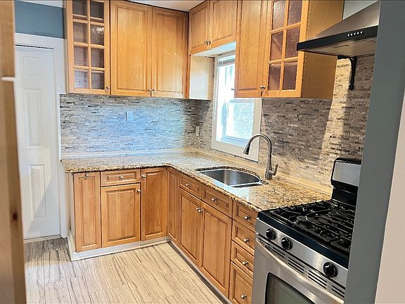 Freshly painted Cape Cod home style single family home. Newly renovated with stainless steal appliances and ready to be rented. This house has 3 bed rooms and 1 bathroom. The living room is an open space right into a beautiful dining area with sliding doors to an amazing view of nature. The area is very quiet and is close by to all your necessary stores and nearby transportation. 2 year lease
