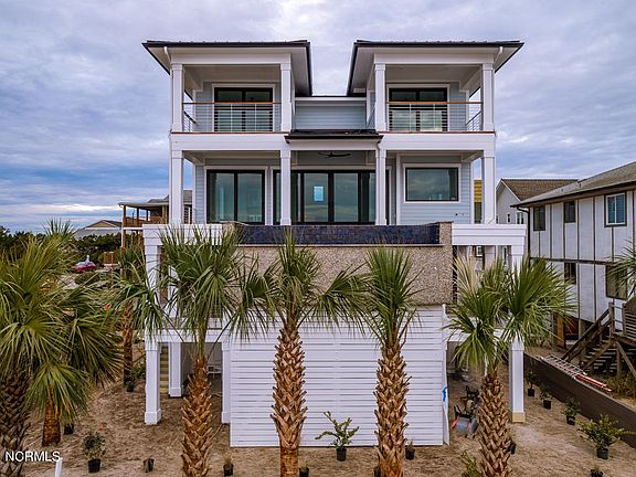 Wrightsville Beach has a finite number (approx. 130) of single-family oceanfront lots and, lucky for you, 17 Augusta Street is one of them! In fact, at 53 feet, it is wider than most. This expertly crafted modern design boasts three full living levels, each with 9+ foot ceilings, a true rarity across the island. A one of a kind elevated custom built Gunite infinity pool and hot tub on the main oceanfront deck offers a signature resort flourish that screams FUN! With 6BR's and 6.5BA's, this hacienda offers the makings of a serious family beach retreat. All BR's are en suite and include access to either a deck or balcony. The spacious great room and kitchen area capture the breathtaking oceanfront panorama. The multiple decks, porches, pool area, inside gathering room with wet bar and kitchenette, all provide ample space to spread out. Interior amenities are as expected in a home of this superior caliber: (2) Viking Dishwashers, 42'' Viking Fridge, 48'' Viking Range, Wine Fridge, Beverage Drawers, pull out Microwave, and an 8ft quartz island. 4-stop elevator with 8ft cab-door. Climate is controlled by 3 top of the line Carrier HVAC systems including Wi-Fi ready thermostats. Plumbing fixtures by Kohler's high end Purist Collection. Interior lighting includes recessed zero glare can lights. Solid core 8ft doors throughout. Zero entry showers. Two separate laundry rooms. (2) tankless water heaters. The exterior is adorned with low maintenance Hardie lap and shake. Exterior trim, soffits, columns are wrapped in durable fiber cement siding. Windows are Andersen's 400 series to meet and exceed Wrightsville Beach's demanding building code. And the whole roof system is ensconced in standing seam metal with ice and wind shield. The details list goes on for miles. A must see, not another home like it on the island. Life really is better at the beach! Come see for yourself.