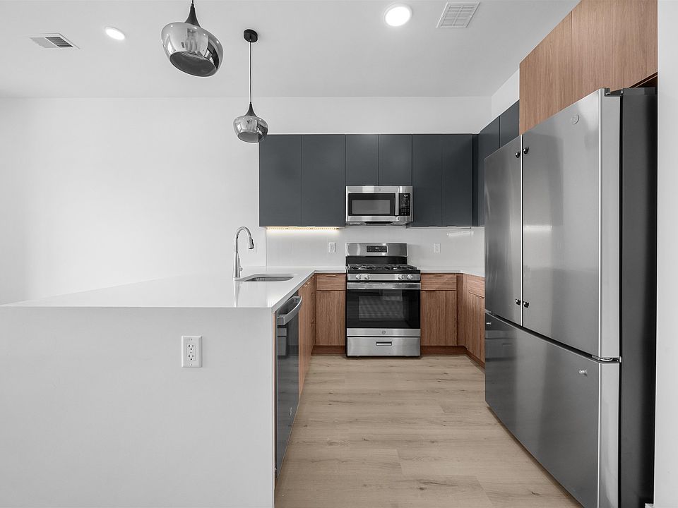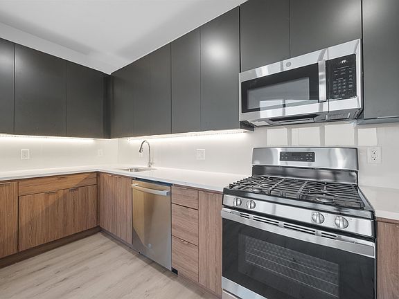 1 month free! Be the first to experience the ultimate in luxury living at BayPark! This brand new building features 30 designer residences with a perfect blend of one and two-bedroom apartments. Perfectly situated in Bayonne's sought-after downtown area, just one block from the 8th street Hudson Bergen Lightrail for a convenient commute into NYC. Each residence is a masterpiece of design and functionality, featuring 10-foot ceilings, floor-to-ceiling windows, expansive living spaces, and upscale finishes. The kitchens are equipped with brand new appliances, double-door fridges, and arctic white quartz countertops, stylish two-tone cabinetry and spacious islands create the perfect space for entertaining. The bathrooms are equally impressive, with stylish designer touches like LED frameless circular mirrors, high-gloss floating vanities, and acrylic soaking designer tubs. Plus, with massive walk-in closets and high-efficiency central heating and cooling, you'll enjoy the ultimate in comfort and convenience. Each residence includes an in-unit washer and dryer. Building amenities include private indoor garage parking with convenient EV charging stations, an exclusive rooftop fitness studio, and a stunning sundeck rooftop oasis featuring a grill and firepit - perfect for relaxation, entertainment, and taking in breathtaking views. Prices listed are net effective pricing. Take a tour today!