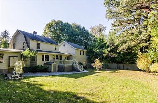 Fantastic 5 bedroom Dutch Colonial with au-pair suite adjacent to bike path, offers possibility of two living areas, NOW with floorplans for connecting. Open floor plan and delightful amenities include updated kitchen, contemporary baths, first floor home office, built-in Bose speakers, french doors, inviting window seat, and 3 fireplaces. Sleek plastered walls and ceilings and contemporary finishes throughout. Upstairs are two bedrooms and a Zen-like bath with oversized tub and rain shower. Breezeway connects main house to au-pair wing with 3 bedrooms (one is plumbed for kitchen conversion) and a full bath, above an oversize two-car garage. Welcoming Farmers Porch, cozy side porch, spacious deck in back overlooking large fenced yard and bike path. Two additional buildings on the property have electric service, ideal for workshop, artist studio or gardening shed. Parking for 6 cars. A unique, intelligently maintained property. Ductwork already in place for central air.