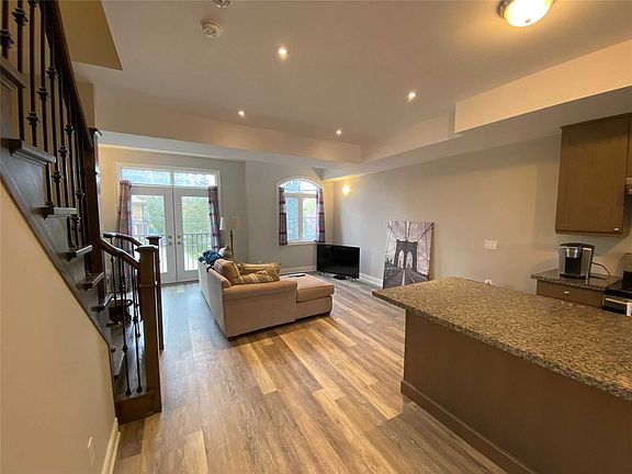 3 Storey Townhome In Downtown Brooklin, 1+1 Bedrooms, 3 Washrooms, Master Bedroom Has Tray Ceilings And Outdoor Juliette Balcony, Den Has Beautiful Indoor Julliete Balcony Above Living Room, Living Room Has French Doors West Side, Double Car Garage, Private Elevator Up To Main Floor, Granite Counter Tops In Kitchen And Washrooms, Convenient Top Floor Laundry, Large Patio Terrace With Gas Line East Side, Vinyl Throughout Top To Bottom