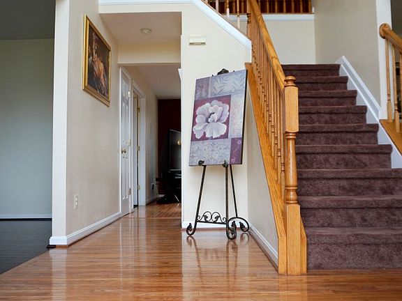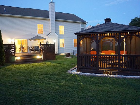Beautiful home in Wynthorpe - this 4 bedroom, 2.5 bath house features an open floor plan, 2 story family room with fireplace, hardwood floors and an incredible back yard with deck and fully wired gazebo for entertaining on one of the largest lots in all of Wynthorpe! Enter the 2 story foyer with hardwood floors, opening to the formal dining room with ceramic tile flooring to the right and living room with Brazilian cherry wood flooring to the left. The hardwood floors continue to the back of the house and to the large, 2 story family room with gas fireplace. Off this room is the powder room and downstairs office with recently upgraded carpet in the last year. To the other side is the kitchen, with upgraded stone backsplash, under cabinet lighting and recessed lights. This opens to the backyard that is built for entertaining, with a large, lighted 285 SF deck, tons of privacy with a treeline across the back of the deep lot, storage shed, and an incredible screened in gazebo ? with electricity, ceiling fan, and even wired for cable TV! The upstairs features a walkway overlooking the entrance foyer to one side and the family room to the other. The carpeting has been updated in the past year, and stretches from the walkway to all 4 bedrooms. The master bath has both a shower and Jacuzzi and both upstairs bathrooms feature double sinks. The living space continues to the finished basement, with a walk out door leading up to the back yard. The finished basement has recessed lighting, is heated and air conditioned and adds 1,200 SF to the 2,950 SF above grade living space of the house. This house includes a home warranty and is truly move in ready and a must see on your next tour!