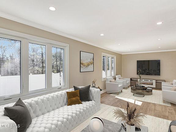 Nestled in the highly sought-after community of Glenbrook Estates in Marlboro, this exquisite three-bedroom, two-and-a-half-bathroom home has been meticulously renovated from top to bottom with $250,000 in upgrades. With no HOA fees and a wealth of modern enhancements, this residence offers both luxury and convenience in an unbeatable location. From the moment you arrive, the home's impressive curb appeal is evident, featuring a brand-new front entry door and an extended concrete driveway. Security and peace of mind are ensured with Ring cameras already installed. Stepping inside, the open floor plan immediately captivates with its seamless flow, enhanced by brand-new hardwood floors, elegant crown moldings, and recessed lighting. Every detail has been carefully considered to create a warm yet sophisticated atmosphere.