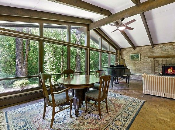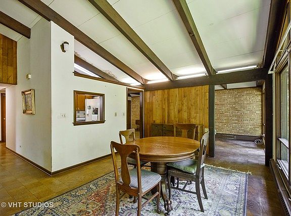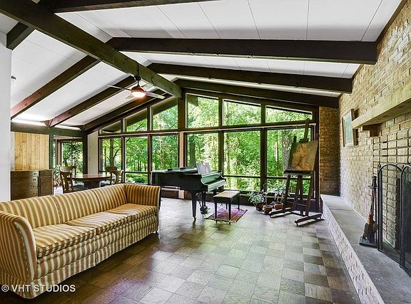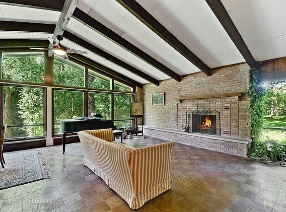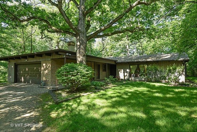This mid-century modern home has been untouched since it was built in 1962 and it's just waiting for your personal touches. Enter through the oversized solid wood door to find an open concept living area with 4 bedrooms and 2 full baths down the hall. A grand stone fireplace is the focal point of the living room which accentuates the vaulted ceiling. The long expanse of windows in the living room brings in abundant natural light and you can feel at peace overlooking your private, wooded 1.14 acre lot. The living/dining combo greets the kitchen which wraps around into a quiet sitting area. This home is primed to be turned into your own private oasis in Barrington Hills.