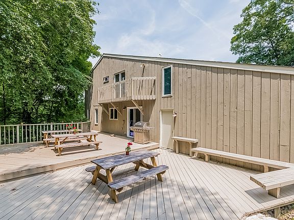 So many new improvements make this home ready for a new owner with carefree lifestyle ! New paint throughout, 2 new baths, new well pump ! Large windows and 18' ceilings bring in the light and scenery. Kitchen has 9 gas burners and walkout to rear deck. Wood stove in great room easily heats the entire house. Decks off every room ! Very secluded and scenic location. Over 1500 feet of exterior decks ! Largest lawn in the neighborhood. Zoned for horses, plenty of coverage available for a barn. Lower level apartment is approved by the town, has separate entrance, and can be rented for $1500 per month ! Large basement with walkout and plenty of storage.