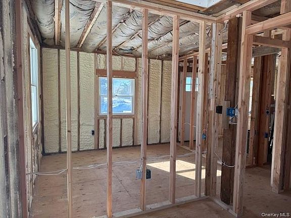 17 Bayport Road, Mastic Beach is a quiet and serene two-bedroom home offering approximately 542sq ft of newly rebuilt living space. The sellers are in the process of completing all Certificates of Occupancy, with all permits to be in place. The home has been fully gutted to the studs and updated with spray foam insulation, new insulation, and new windows. Features include an eat-in kitchen, laundry area, full bath, and two bedrooms. A great opportunity to choose your own colors and finishing touches. Conveniently located near the marina with rare privacy and no adjacent neighboring homes. Ideal for first-time buyers or those looking to downsize.