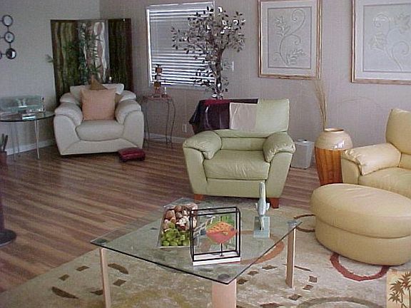FULLY RENOVATED AND PRICED FOR QUICK SALE! Contemporary designed home adjacent to the coveted BIGHORN Golf and Country Club at a bargain price! No age restrictions inside the gated Silver Spur MHC! 2bd 2ba. 1,440 Sq. Ft. Wall-to-Wall luxurious wood flooring boasting Brazilian Cherry in the kitchen/dining area and Oak in all other rooms. Security system for safety. Crown Molding throughout. Dog friendly. Stainless steel refrigerator, dishwasher, oven, and stove. High-grade lighting compliments the interior. Unwind in the full-sized bathtub in the master bathroom. Exterior features a 3-car carport. Storage shed in rear for your belongings. BBQ or relax inside the South-end privacy fence with a covered porch and garden utilizing vibrant synthetic grass. Automatic watering system maintains all landscaping. Plenty of room for garden, spa, or anything else your imagination desires! Send your kids to the esteemed Washington Charter School district. This home can be yours for less than $37 per Sq. Ft! Low space rent of appx. $850 per month (NO PROPERTY TAXES!) All potential buyers must qualify for community residency by completing a simple, free application available from seller or office. Call Nicholas today at (760) 202-5909! About the community: The Silver Spur Community features a private gated entry, crystal-clear pool and two spas, putting greens for golf, bocce ball court, workout gym facility, billiard room, library, clubhouse and event center for hosting private gatherings, BBQ and lawn area, desert garden walk, full-time maintenance, landscapers, and professional manager on site, minutes away from the world-renowned El-Paseo shopping district, entertainment, hiking and biking trails, and more! Send your kids to the top-rated Palm Desert schools consisting of: Elementary School (Grades K-5) George Washington Charter Elementary School, Middle School (Grades 6-8) Palm Desert Charter Middle School, High School (Grades 9-12) Palm Desert High School, and College of the Desert. Visit http://www.silverspurpalmdesert.com/ for more information.