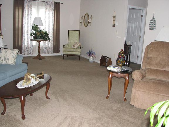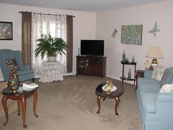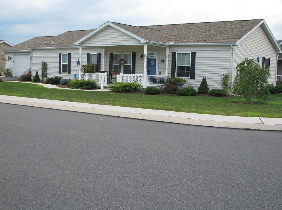 NICE CORNER LOT FOR THIS LIKE-NEW ONE-STORY RANCHER WITH OVERSIZE 1 CAR 18X25 GARAGE. CONSTRUCTED IN 2013 IT FEATURES 3 BEDROOMS, 2 FULL BATHS, DOUBLE LIVING ROOM, OR USE AS DINING ROOM, EAT-IN KITCHEN WITH LOTS OF CABINETS & AN ISLAND & LAUNDRY. ECONOMICAL GAS HEAT & CENTRAL AIR, FRONT PORCH & REAR CONCRETE PATIO. 2 GARDEN WINDOWS IN THE KITCHEN. ALL OF THE APPLIANCES TO STAY. GARAGE HAS FINISHED INTERIOR. LOT RENT $295. LR CURTAINS RESERVED.
