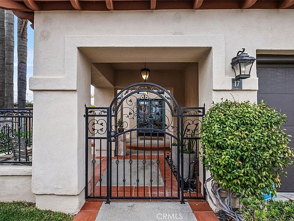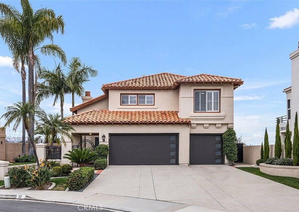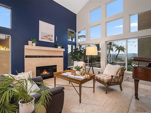 Welcome to 17 Bergamo ~ a panoramic view Marina Hills 4 bedroom + office/loft/5th bedroom beauty privately perched at the top of a cul de sac in the coveted Amarante community. Your first glimpse of the property rewards with an immense driveway leading up to the 3 car garage enclosed with beautiful new doors. Upon entering your private gated courtyard, grand over-sized leaded glass doors sparkle, beckoning you to enter. Inside light pours in from windows illuminating the cathedral ceiling living room complete with warm fireplace. If you can tear yourself from the gorgeous views, pass your spacious dining room bathed in light from another wall of windows to your fully equipped chefs kitchen. Stainless steel high-end appliances and custom cutting board topped island open to a spacious family room boasting another fireplace and of course spectacular vistas! Two sliding door options take you out back to your private oasis — relax in the spa, cozy up around the fire pit, savor a meal with friends — whatever you choose to do all your senses will delight in the captivating views and the ever changing show nature provides! Back inside, a laundry room with sink and powder room complete downstairs. Ascend the grand circular staircase accented with granite finishes to your primary suite featuring incredible views showcased through another wall of windows. Want to see more? Step onto your en-suite private primary balcony immersing yourself in all nature has to offer. Your en-suite primary bathroom has tastefully updated finishes, large walk in closet and another opportunity to soak with a view in your jetted tub. Upstairs also hosts three secondary bedrooms, bathroom with double vanity and separate room for shower and an office/loft that easily could become a fifth bedroom. The three car garage has loads of storage and epoxy floors. Large baseboards throughout, plantation shutters, newly painted, timeless travertine flooring downstairs, ceiling fans plus new water heater & water softener - this well maintained home is move-in ready! Marina Hills provides amazing resort style amenities including pickleball, tennis, pools, parks & more! No Mello Roos and low HOA - all near beloved hiking trails and world famous beaches less than 5 miles away. Homes in this community are rarely available ~ don’t miss your opportunity to wake up everyday to stunning views in California casual luxury!