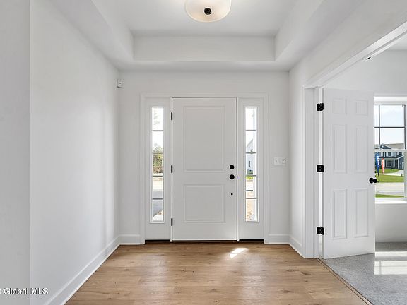 NEWLY BUILT HOME with $100K in upgrades and premium finishes in Niskayuna's Harmon Grove community. NO WAIT- move right in! ***Seller can no longer relocate to the area*** Modern colonial farmhouse meets urban contemporary in this BRAND NEW spectacular Amedore-built home. Enjoy an open & bright layout with 9-ft ceilings, dining area/kitchen expansion, gourmet kitchen package w/all of the bells & whistles! At the heart of the home is the extraordinary great room w/gas fireplace & sliders leading to a yard backing to the woods. 3 second flr BRs incl. master suite displaying black ceramic tile flooring, dbl vanity w/squared cultured marble sinks, shower & walk-in closet. First flr office/4th BR option. This model is $35K more to build right now.